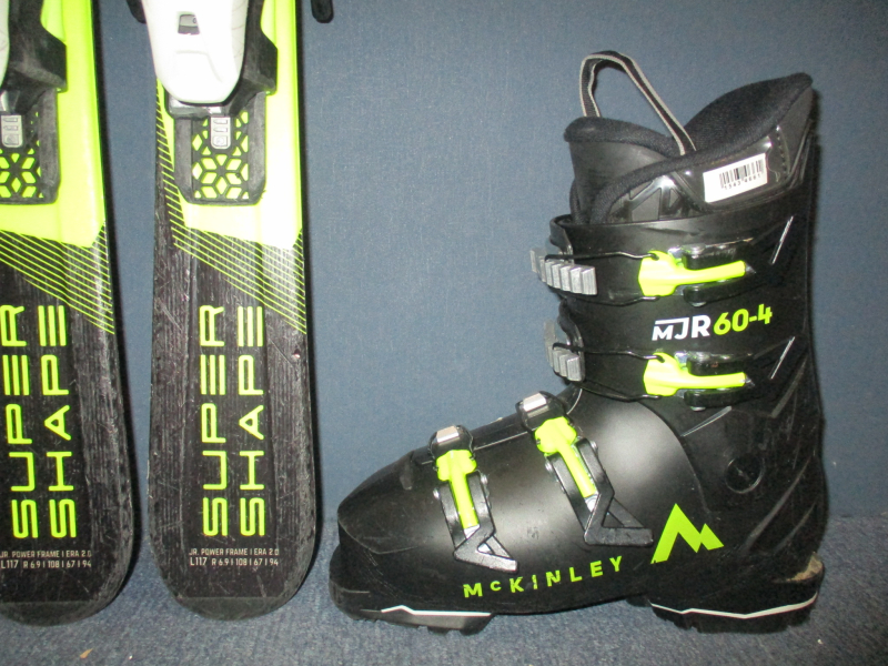 Cena je za komplet. Záruka 1 rok.10144. Juniorské carvingové lyže HEAD SUPERSHAPE TEAM 117cm, lyže sú po servise sklzníc, radius 6,9m, krojenie 108 - 67 - 94, kompozitové jadro + sklolaminát, konštrukcia power frame, technológia ERA 2.0, + lyžiarky MCKINLEY MJR 60 stielka 24,5 cm, 4x pracka, flexindex 60