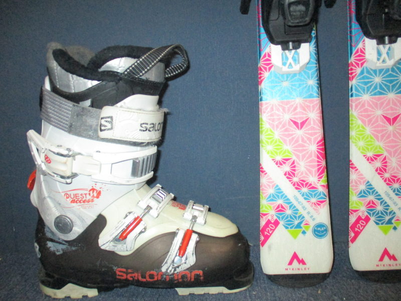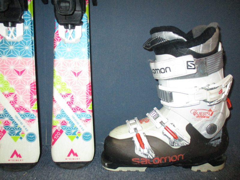 Cena je za komplet. Záruka 1 rok.10139. Juniorské carvingové lyže MCKINLEY SWEETY 22/23 120cm, lyže sú po servise sklzníc, radius 8,6m, kompozitové jadro + sklolaminát, konštrukcia full power cap, krojenie 105 - 67 - 93, early rise rocker + lyžiarky SALOMON QUEST ACCESS stielka 24,5 cm, 3x pracka (2x mikro + 1x ratchet buckle), flexindex 80, oversized pivot
