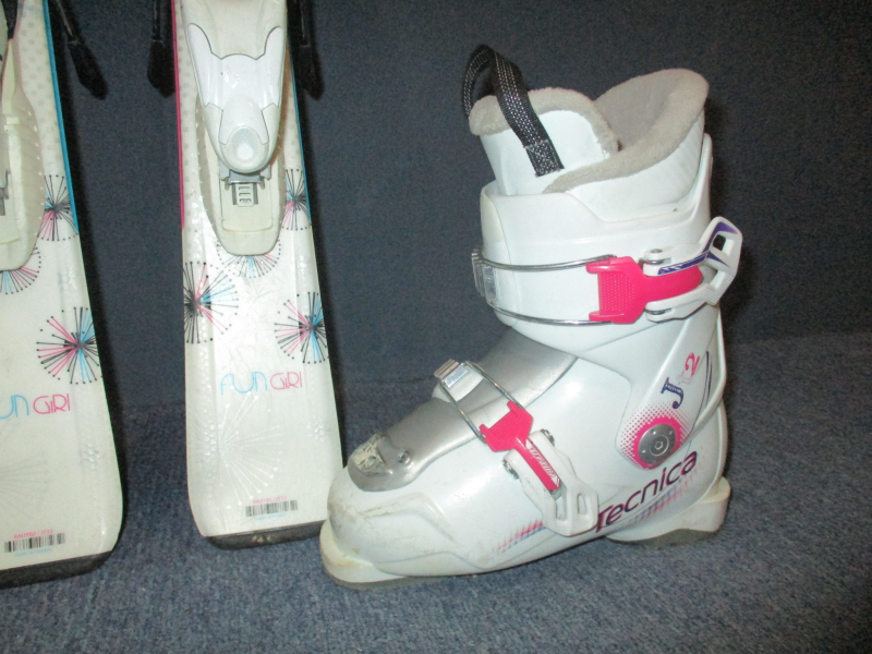 Cena je za komplet. Záruka 1 rok.10651. Detské carvingové lyže ROSSIGNOL FUN GIRL 100cm, lyže sú po servise sklzníc, rádius 6m, krojenie 107 - 68 - 94, kompozitové jadro + sklolaminát, konštrukcia cap + lyžiarky TECNICA JT 2 stielka 20,5cm, 2x pracka, flexindex 50. SUPER STAV