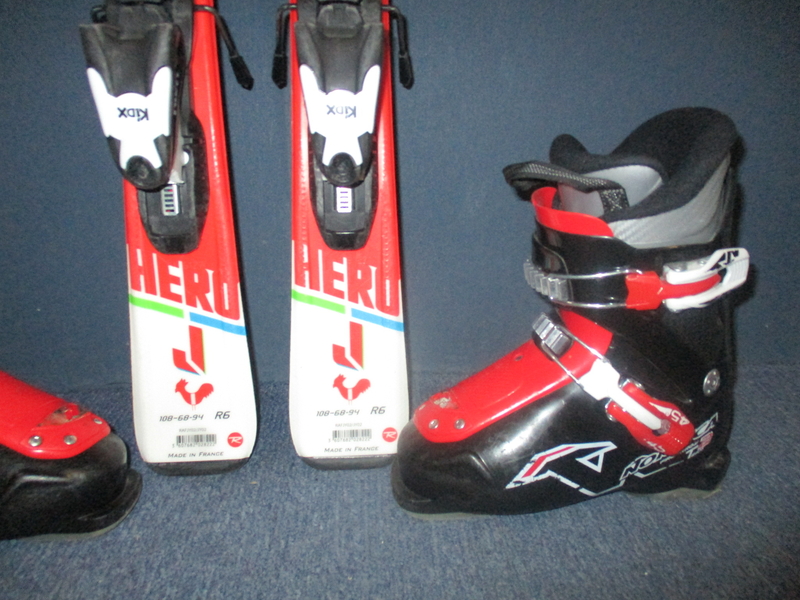 Cena je za komplet. Záruka 1 rok.10712. Detské carvingové lyže ROSSIGNOL HERO 100cm, lyže sú po servise sklzníc, radius 6m, krojenie 107 - 68 - 94, kompozitové jadro + sklolaminát, konštrukcia cap + lyžiarky NORDICA FIREARROW TEAM 2 stielka 20,5 cm, 2x pracka, flexindex 50. SUPER STAV