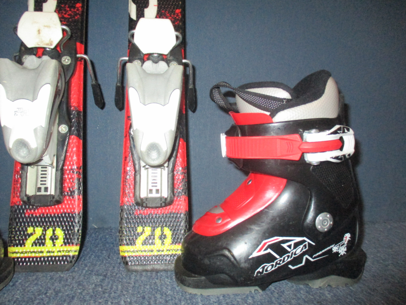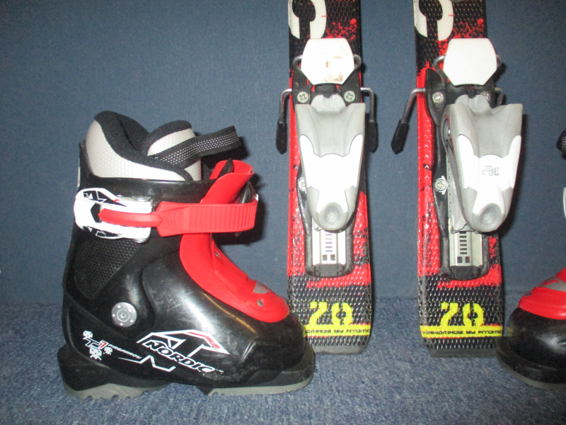 Cena je za komplet. Záruka 1 rok.10618. Detské carvingové lyže ATOMIC REDSTER 70cm, lyže sú po servise sklzníc, rádius 3,5m, kompozitové jadro + sklolaminát, konštrukcia cap, hadí povrch + lyžiarky NORDICA FIREARROW TEAM 1 stielka 15,5cm, 1x ozubený uťahovací pásik, flexindex 40. SUPER STAV