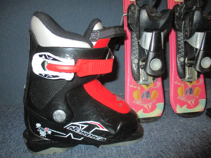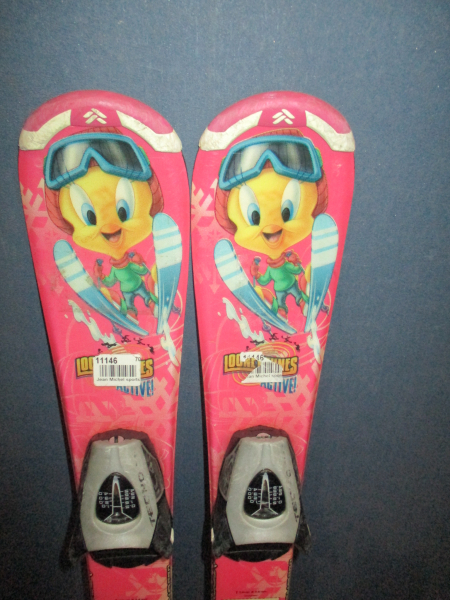 Cena je za komplet. Záruka 1 rok.10613. Detské carvingové lyže TECNO PRO LOONEY TUNES ACTIVE 70cm, lyže sú po servise sklzníc, radius 3m, krojenie 95 - 66 - 86, kompozitové jadro + sklolaminát, konštrukcia cap + lyžiarky NORDICA FIREARROW TEAM 1 stielka 15,5 cm, 1x ozubený uťahovací pásik, flexindex 40. VÝBORNÝ STAV