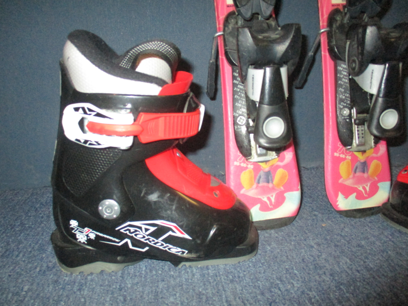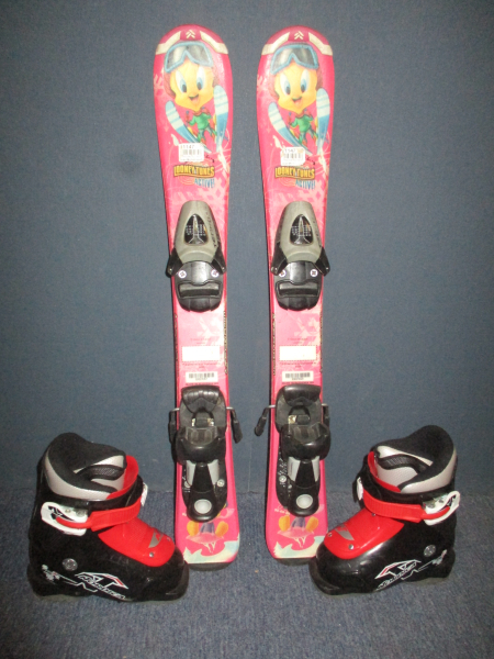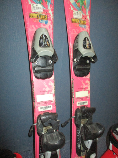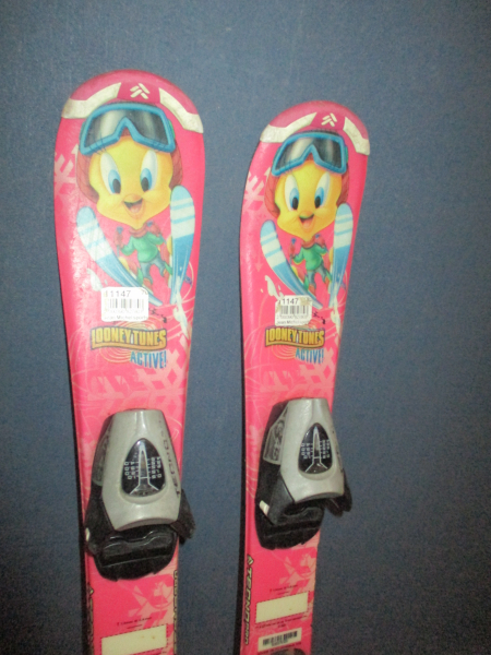 Cena je za komplet. Záruka 1 rok.10614. Detské carvingové lyže TECNO PRO LOONEY TUNES ACTIVE 70cm, lyže sú po servise sklzníc, radius 3m, krojenie 95 - 66 - 86, kompozitové jadro + sklolaminát, konštrukcia cap + lyžiarky NORDICA FIREARROW TEAM 1 stielka 15,5 cm, 1x ozubený uťahovací pásik, flexindex 40. SUPER STAV