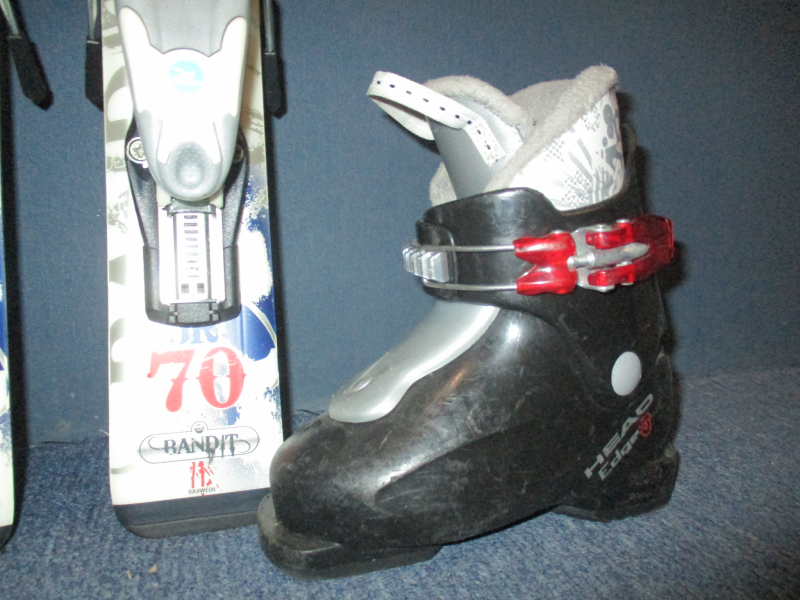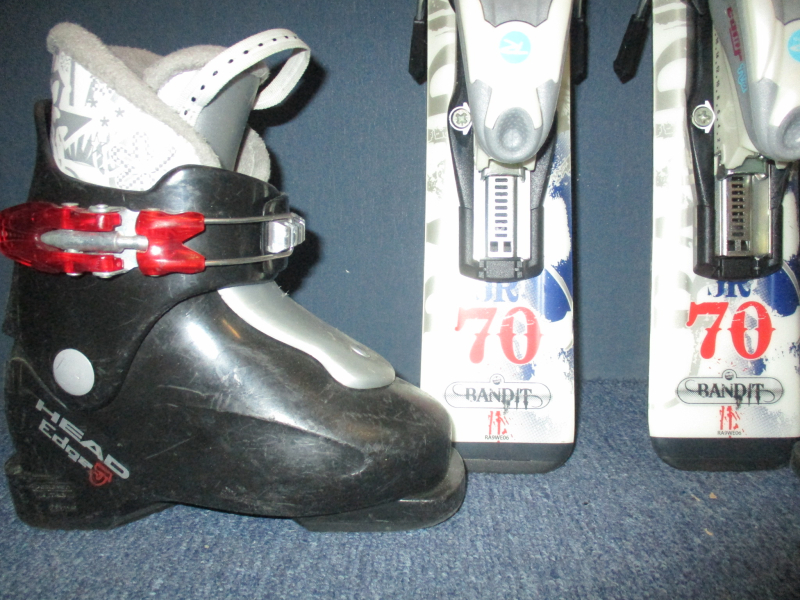Cena je za komplet. Záruka 1 rok.10646. Detské carvingové lyže ROSSIGNOL BANDIT 80cm, lyže sú po servise sklzníc, rádius 8m, kompozitové jadro + sklolaminát, konštrukcia cap + lyžiarky HEAD EDGE Jr stielka 17,5 cm, 1x pracka, flexindex 40. SUPER STAV. Lyže ako nové