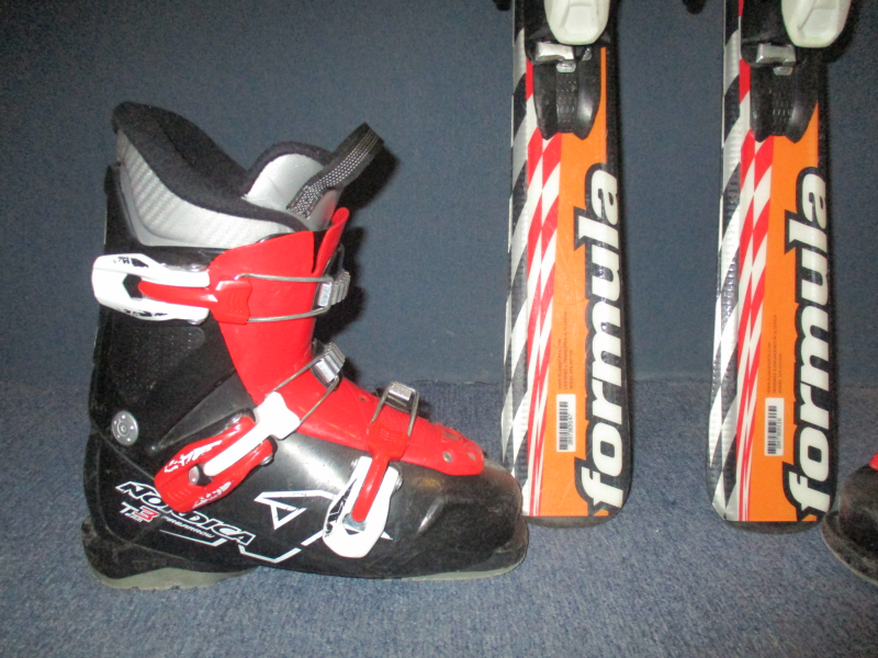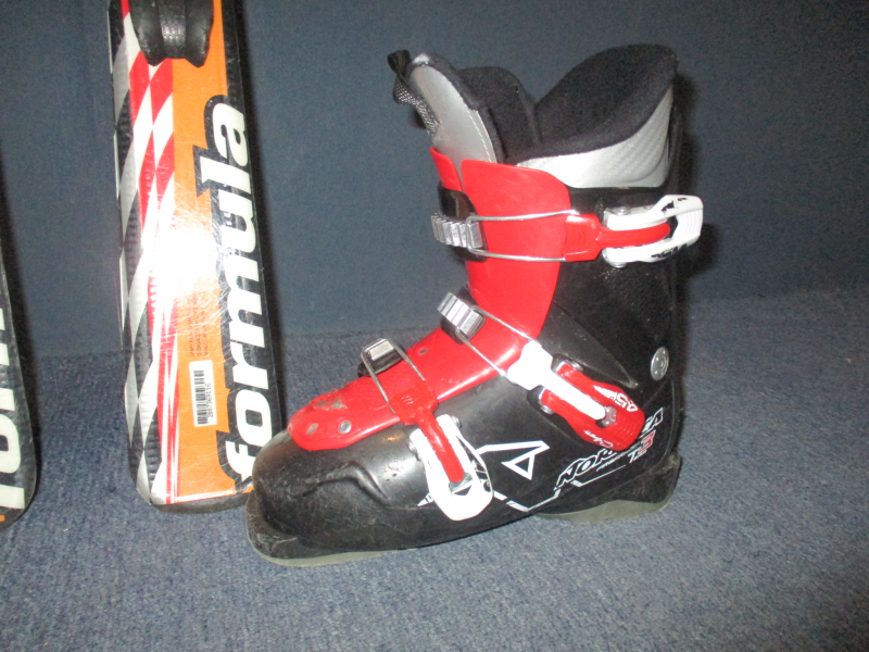 Cena je za komplet. Záruka 1 rok.10662. Juniorské carvingové lyže ELAN FORMULA GX 120cm, lyže sú po servise sklzníc, rádius 8,6 m, kompozitové jadro + sklolaminát, konštrukcia full power cap + lyžiarky NORDICA FIREARROW TEAM 3 stielka 23,5 cm, 3x pracka, flexindex 50. SUPER STAV