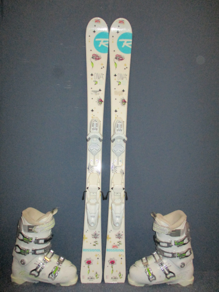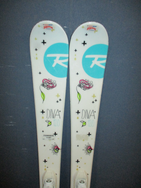Cena je za komplet. Záruka 1 rok.10141. Juniorské carvingové lyže ROSSIGNOL DIVA 120cm, lyže sú po servise sklzníc, radius 9m, krojenie 111 - 67 - 97, kompozitové jadro + sklolaminát, konštrukcia full power cap + lyžiarky