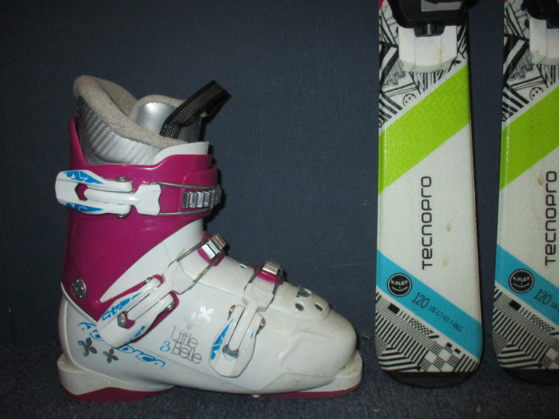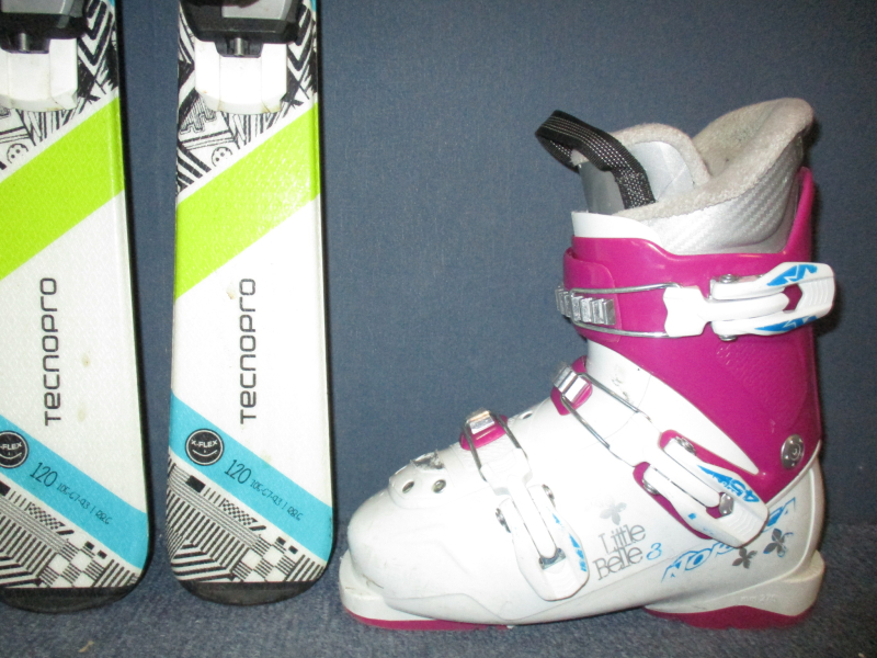 Cena je za komplet. Záruka 1 rok.10138. Juniorské carvingové lyže TECNO PRO SWEETY 120cm, lyže sú po servise sklzníc, radius 8,6m, kompozitové jadro + sklolaminát, konštrukcia full power cap, krojenie 105 - 67 - 93, early rise rocker + lyžiarky NORDICA LITTLE BELLE stielka 23,5 cm, 3x pracka, flexindex 50, SUPER STAV
