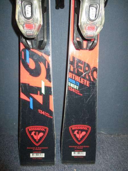 Záruka 1 rok.10039. Juniorské športové lyže ROSSIGNOL HERO ATHLETE 9 MULTI EVENT 134 cm, lyže sú po servise sklznice, rádus 9 m, profil 112 - 65 - 97, celodrevené jadro + sklolaminát, sendvičová konštrukcia rectangular, vertikálne bočnice, prehnutie full camber, špička tip protector, VÝBORNÝ STAV