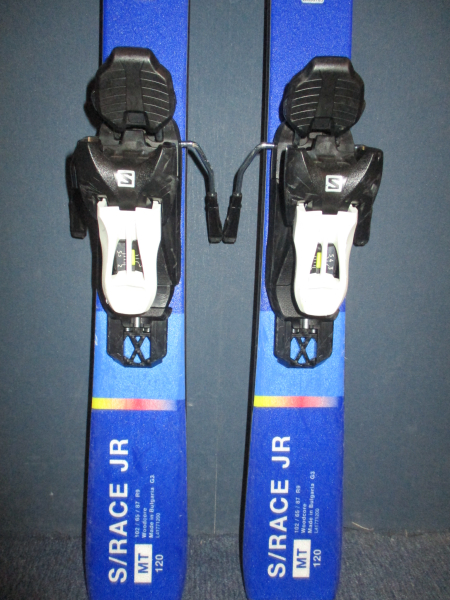 Záruka 1 rok.10045. Juniorské športové lyže SALOMON S/RACE MT 120cm, lyže sú po servise sklznic, rádius 9m, krojenie 102 - 65 - 87, drevené jadro + sklolaminát, konštrukcia full sandwich sidewall, ABS sidewall, edge grip, tvar oblúka multi turn, VÝBORNÝ STAV Model 2022/2023