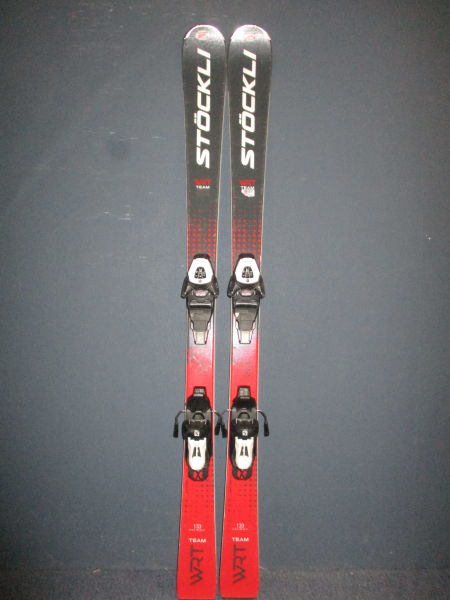 Záruka 1 rok.10068. Juniorské športové lyže STÖCKLI WRT TEAM 133 cm, lyže sú po servise skluznic, radius 10,5 m, krojenie 109 - 65 - 91, drevené jadro + sklolaminát, sendvičová konštrukcia SST, technológia SME (solid metal edge), povrch polyamid, skluznice Racing graphite, SUPER STAV Model 2021/2022